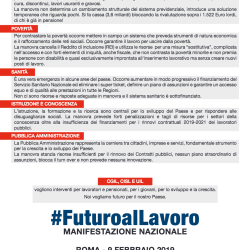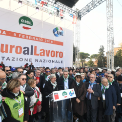 “Oggi il governo ha una chance bellissima – ha detto la leader Cisl – Uscire dalla retorica della crescita che non c’è ed entrare nel confronto per la crescita. Come si fa a dire che il 2019 sarà un anno bellissimo? Se le cose vanno avanti così, non ci crede più nessuno. Apriamo un confronto vero per rilanciare la crescita. Caro governo, caro presidente – esorta Furlan – tante persone, centinaia di migliaia sono qui oggi a chiederlo, anche le imprese, e lo facciamo insieme. Le nostre bandiere di colore diverso – ha aggiunto – sono una accanto all’altra, unite a raccontare una vicenda lunga, comune, a ricordare che i sindacati confederali hanno saputo rappresentare una bella storia nel nostro Paese, soprattutto nei momenti piu’ difficili. Abbiamo motivi per stringerci assieme ed essere orgogliosi. Orgogliosi di 12 milioni di lavoratori e lavoratrici e pensionati e pensionate che rappresentiamo. Insieme facciamo ripartire l’Italia” – rivendica Furlan. “Perché si sblocchino le infrastrutture, si investa su crescita formazione e Pa, perché si dia dignità al lavoro e al suo popolo, noi oggi siamo qui. Abbiamo già detto queste cose al governo, ahinoi inascoltati. 80 miliardi di investimenti bloccati, 40 mila posti di lavoro bloccati. Si sblocchino questi investimenti, si dia un futuro al nostro paese – ribadisce – , senza crescita e lavoro non c’e’ dignità. Si sta mettendo in ginocchio l’Italia, dalla Tav alle tante opere bloccate nel nord e sud. L’Italia ha bisogno di infrastrutture”.