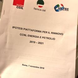È stata presentata oggi, all’assemblea nazionale di Filctem-Cgil, Femca-Cisl, Uiltec-Uil riunitasi a Roma, l’ipotesi di piattaforma per il rinnovo del contratto del settore energia e petrolio (oltre 37.000 i lavoratori interessati), in scadenza il 31 dicembre 2018. Ora la parola spetta alle assemblee dei lavoratori per consentire l’avvio delle trattative – presumibilmente a gennaio – con Confindustria Energia, l’associazione imprenditoriale di riferimento, alla quale è già stata inoltrata la lettera di disdetta.