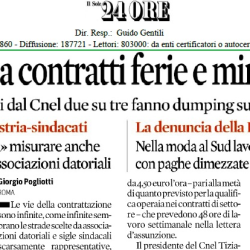 Articolo pubblicato da Il Sole 24 Ore in data 2 marzo 2018, in cui l’autore Giorgio Pogliotti riprende l’indagine della Femca Cisl nazionale sulla contrattazione pirata nel settore tessile, diffusa soprattutto al Sud.