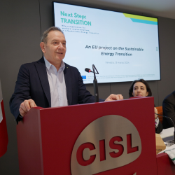Si è conclusa ieri a Venezia la prima visita studio nell'ambito di "Next Step: TRANSITION", il progetto co-finanziato dall'Unione europea e coordinato dalla FEMCA CISL nazionale, che ha portato una delegazione dei partner di progetto ADAPT, #HelexInstitut, СМФ Подкрепа / SMF Podkrepa, CSC BIE, IGBCE , UGT FICA, FLAEI - Cisl Nazionale, a conoscere la realtà industriale di Porto Marghera e la bioraffineria Enilive, la prima in Europa a riconvertire i vecchi impianti in cicli produttivi che utilizzano materiali biogenici per carburanti innovativi. Ieri, durante lo scambio sindacale, oltre ai rappresentanti dei 5 sindacati partner, sono intervenuti i segretari Nora Garofalo e Sebastiano Tripoli (Femca Cisl Nazionale), Gianfranco Refosco (CISL Veneto Unione Sindacale Regionale), Giuseppe Callegaro (Femca Cisl Venezia), Michele Zanocco (Cisl Venezia).