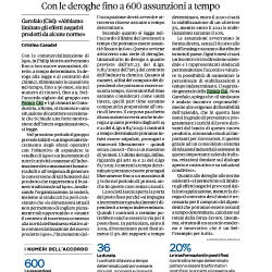 L’azienda si è inoltre impegnata a trasformare in contratti a tempo indeterminato almeno il 20% di questi contratti a termine (il limite dei lavoratori a tempo determinato è di massimo 600 unità), in tre fasi fissate entro i mesi di dicembre del 2019, del 2020 e del 2021. L’accordo prevede anche una deroga alla legislazione vigente, poichè dà all’azienda la possibilità di prorogare liberamente i contratti di lavoro a tempo determinato fino ad un massimo di 5 volte all’interno del periodo di 36 mesi, senza l’applicazione della causale. Ogni 6 mesi, infine, ci sarà un incontro tra la direzione aziendale e i rappresentanti sindacali per monitorare l’accordo e valutare la possibilità di aumentare la percentuale di stabilizzazioni a tempo indeterminato”.