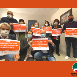 Per questo abbiamo deciso come FEMCA di sostenere la campagna #DemocracyAtWork della Confederazione Europea dei Sindacati (ETUC), facendo appello alle istituzioni nazionali ed europee affinché intervengano immediatamente per garantire il rispetto dei diritti dei lavoratori nei processi di ristrutturazione in tutti i luoghi di lavoro!