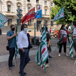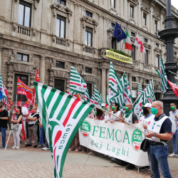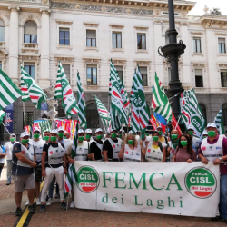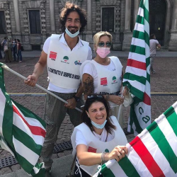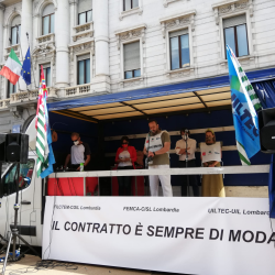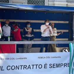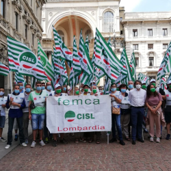 I presidi si sono svolti in tutta Italia. In piazza della Scala a Milano, la rappresentanza della Femca Cisl nazionale con il segretario Raffaele Salvatoni.