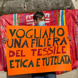 22 giugno 2021 – Si è tenuta oggi la mobilitazione generale delle lavoratrici e dei lavoratori del settore tessile abbigliamento, in attesa del rinnovo e dell’aggiornamento del contratto collettivo nazionale di lavoro, scaduto da oltre un anno e mezzo, a causa della posizione ostativa delle controparti datoriali.
