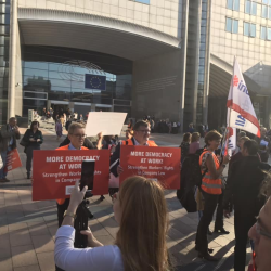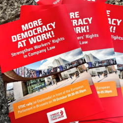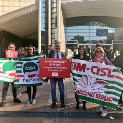 Dopo il richiamo della Confederazione europea dei sindacati (CES), tanti tra rappresentanti sindacali e membri dei comitati aziendali europei che difendono gli interessi di milioni di lavoratori in società multinazionali, si sono riuniti il 10 ottobre scorso di fronte al Parlamento europeo a Bruxelles per chiedere più democrazia al lavoro. In questa occasione, in concomitanza con la conferenza annuale sui Comitati Aziendali Europei promosso dalla CES, l’appello europeo per More Democracy At Work, firmato da oltre 900 sindacalisti, politici e accademici, tra cui membri del Parlamento europeo, ex primi ministri e leader sindacali, è stato consegnato ai rappresentanti del Parlamento europeo.